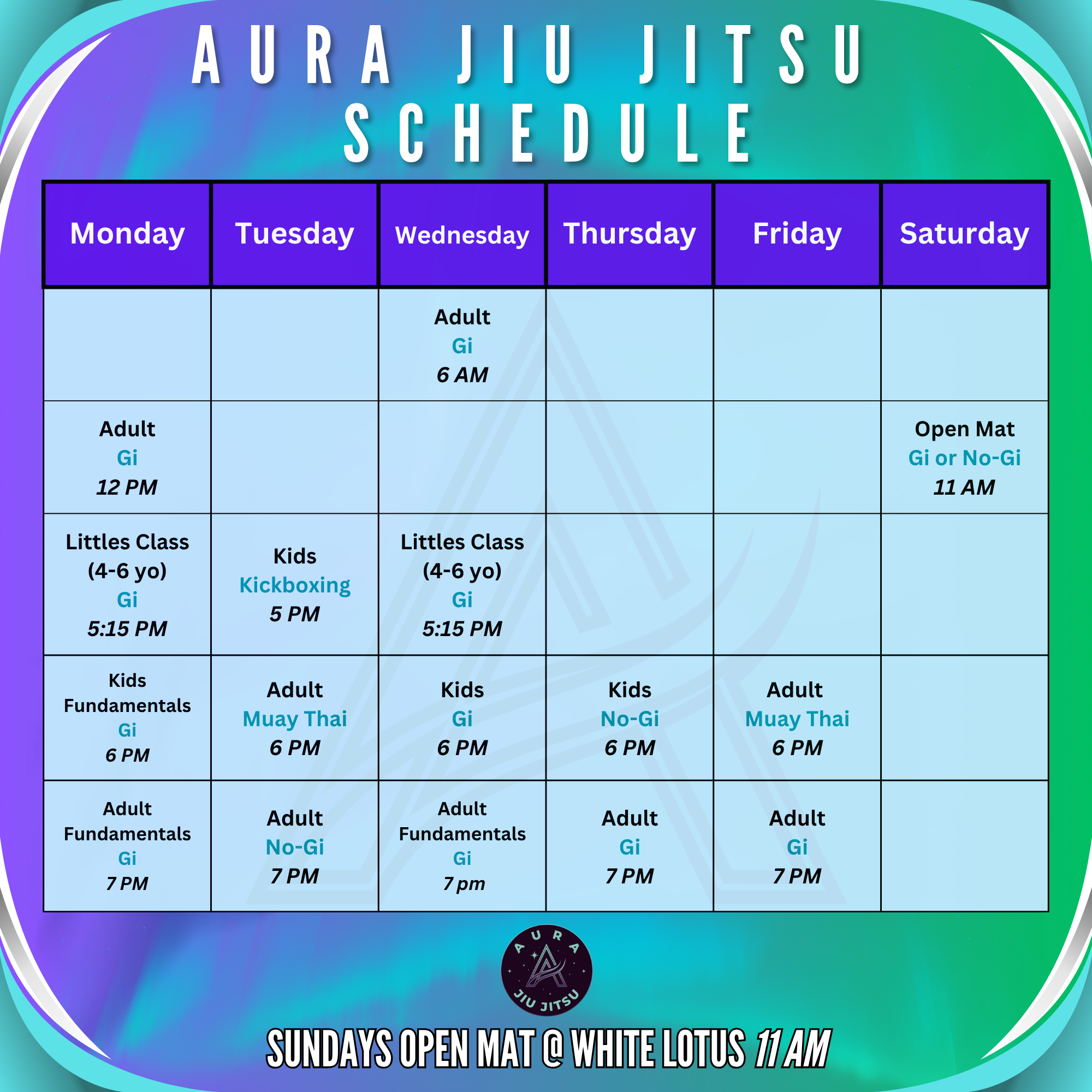 Aura is about creating an environment that is positive, uplifting, and focused on growth. It is about showing up with intention, supporting each other, and building something bigger than ourselves. It's the quiet confidence to improve every day and the discipline to keep going when things get hard.